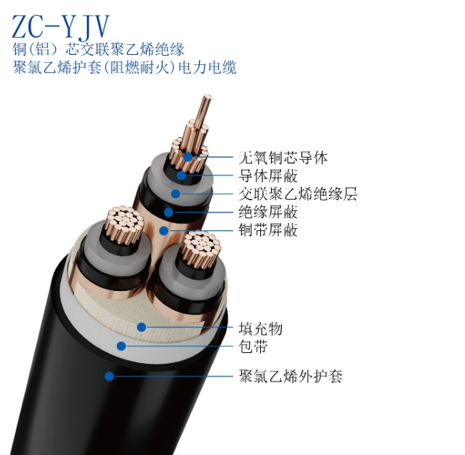 字母含義:YJ:交聯(lián)聚乙烯絕緣;V:聚氯乙烯護(hù)套;L:鋁導(dǎo)體(銅導(dǎo)體省略)